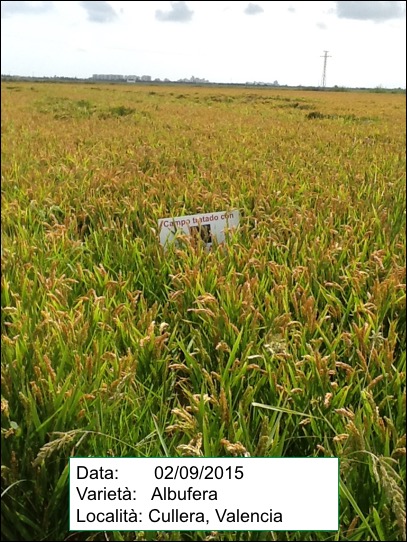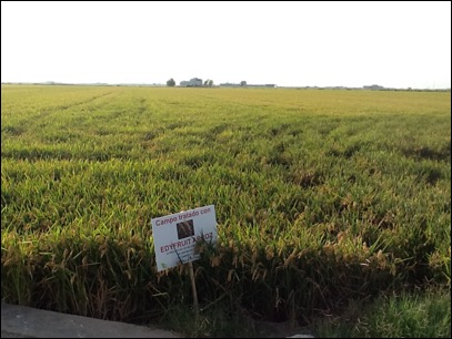 Parcella di riso J.Sendra trattata con ROOT RICE e EDYFRUIT ARROZ. Il coltivatore che possedeva la terra dice che lo sviluppo è stato molto veloce e le piante sono molto sani nonostante abbia Pyricularia.